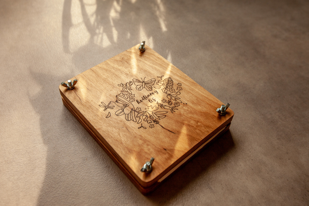 Květinový lis 160×195 mm – ručně vyráběný z březové nebo dubové překližky