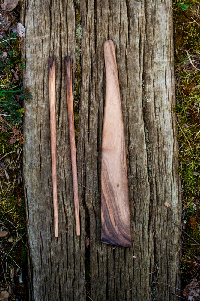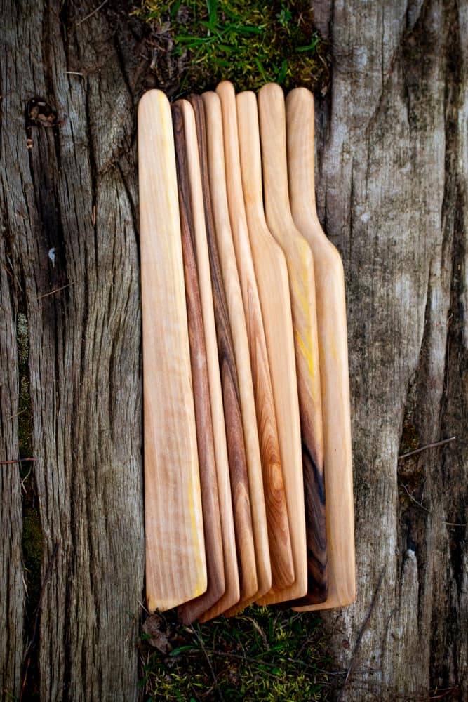 Vařečky, lžíce, lžičky, naběračky, hůlky- to vše ručně broušeno a lapováno. Materiál je převážně jasan, ořech ale i krásný materiál jako je červený javor a oliva.